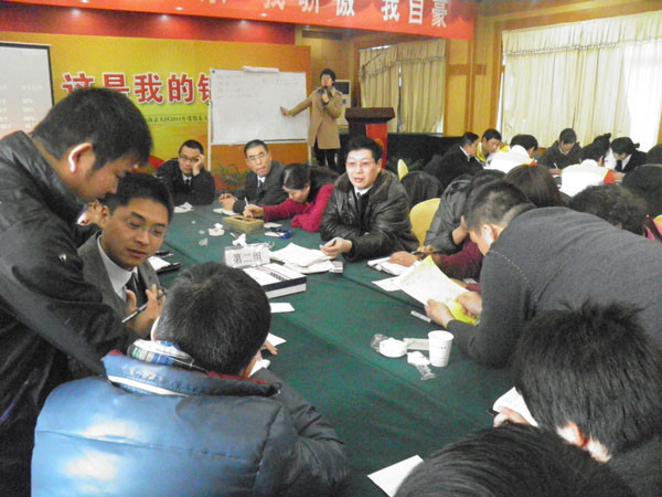 第二輪:新格局、新思維、新模式的2011年!本次的股東大會,更加注意了所有股東的參與和互動,現場丁總不間斷的提問,不間斷的小組討論,為了贏得最終的勝利!設計、工程、服務,一個都不能少;產值、滿意度、排名,面面俱到!現場的氣氛火熱而緊張!