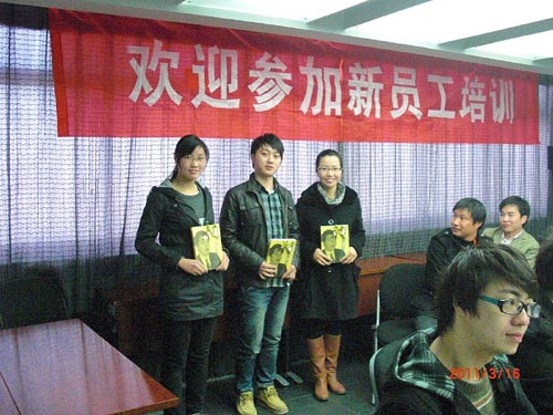 優秀市場部經理陶玲為新員工分享“如何贏得客戶”的營銷培訓