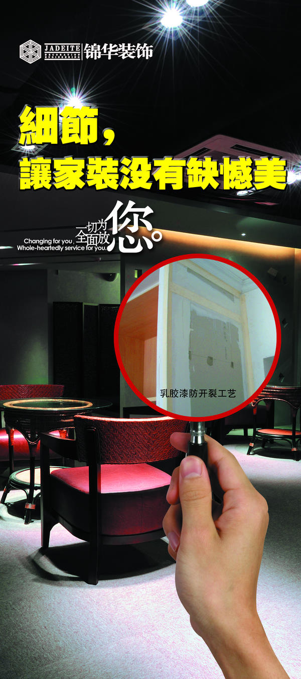 都說裝修是遺憾的藝術,那是因為細節沒有做到位。作為行業領軍企業的錦華裝飾,在2012年初,推出了設計、施工、材料、服務四大保障體系,并從本周末開始推出“細節,讓家裝沒有缺憾美”為主題的放心家裝3.15系列活動;全面解析家裝中的細節問題,讓家裝無后顧之憂。