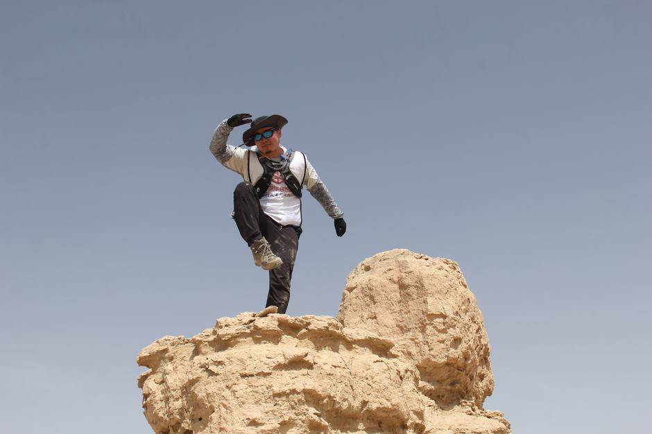 無(wú)盡的蒼茫戈壁,沿途都是荊棘、沙石、坑洼以及綿延不絕的戈壁溝壑,漫漫長(zhǎng)路和炙熱的陽(yáng)光考驗(yàn)著每個(gè)隊(duì)員。